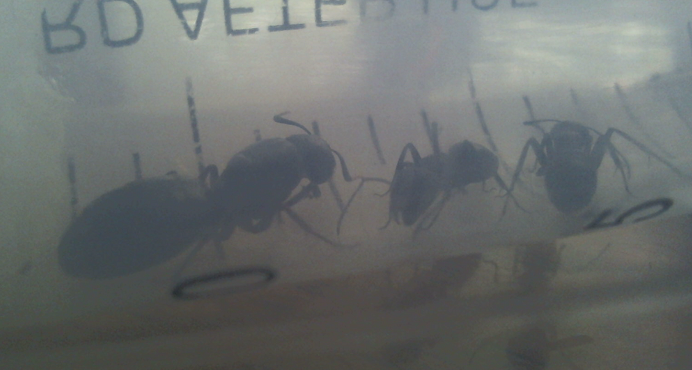 Матка приняла обоих рабочих вагусов, первого я утопил а второго просто подсадил, первый был "завербован" в первые несколько часов, так как ему некуда было деться он был с маткой в закрытой пробирке, второго муравья я подсадил уже в контейнер с заведомо открытой пробиркой, почти 2 дня он бегал кругами в панике, но к вечеру я наблюдал как его вербует рабочий которого я подсадил ранее, делится с ним едой и как я понял перенимает от него "запах" который он получил от королевы, после он спокойно зашел в шприц и продолжил обмен "любезностями" с королевой, и вот на третий день он уже тут как свой.