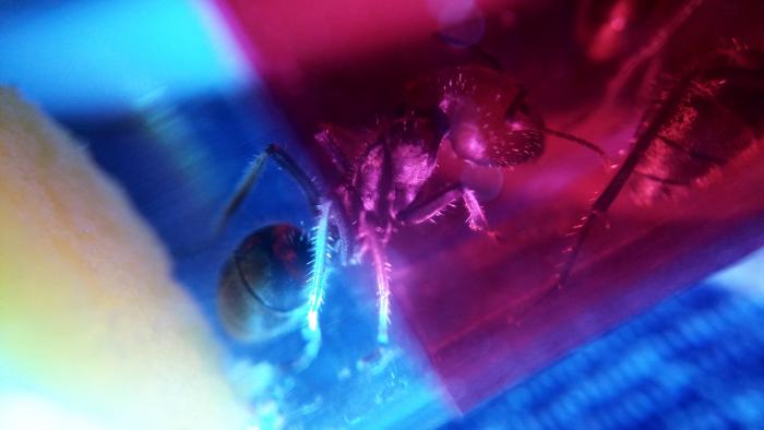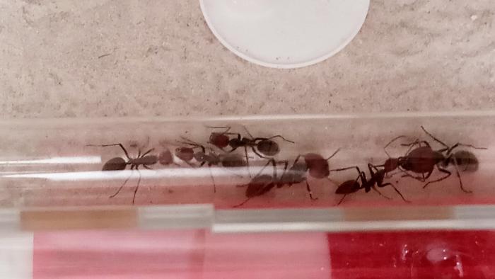 Не ели ничего три дня. Первые сутки просидели на коряге, пробирку нашли только двое. Потом был очередной "дождик" для растений, сингулярисам тоже перепало. Через час все были уже "в домике". Два дня сидели там, почти не двигаясь, ничего не делая. Обнять и плакать. Я уж было думала, что все, кирдык мурашам.