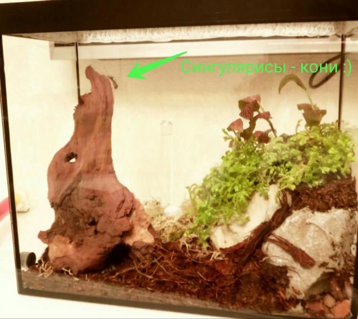 Я засняла несколько видео сингулярисов. В первом показала крышку. Под крышкой по краю арены будет наклеен бортик с светодиодной лентой-подсветкой и ниже будет закреплена лампа полного спектра для растений. Покажу потом.