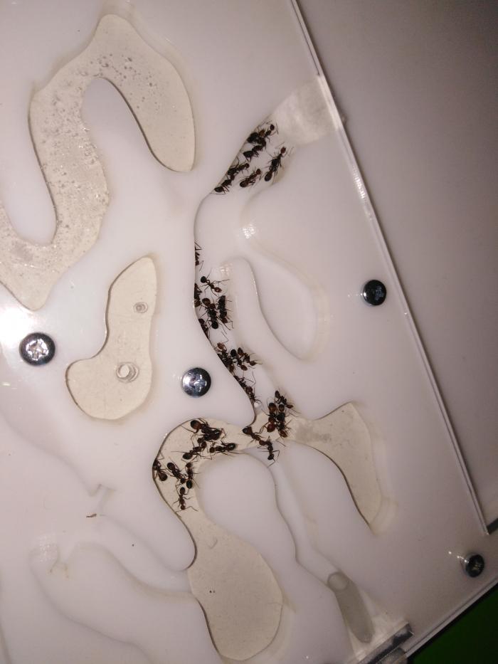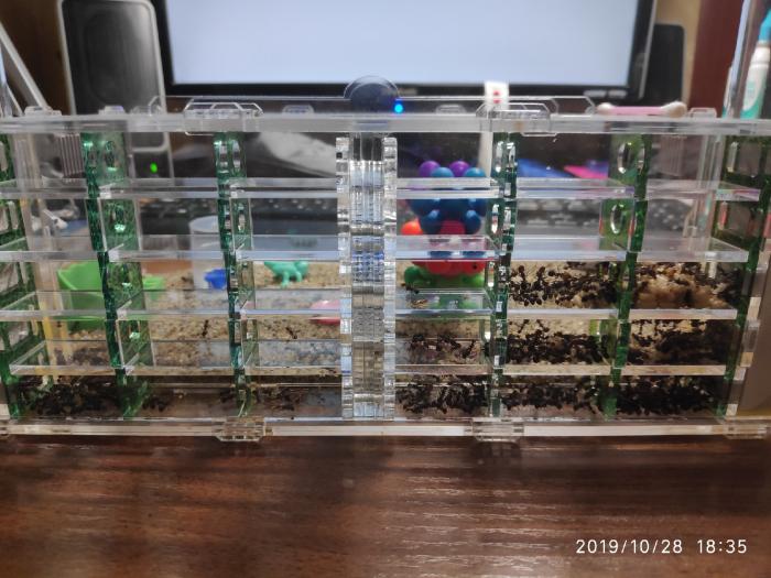 На данный момент в дополнительном гнезде находятся 35 +- муравьёв, среди них пара солдат.
