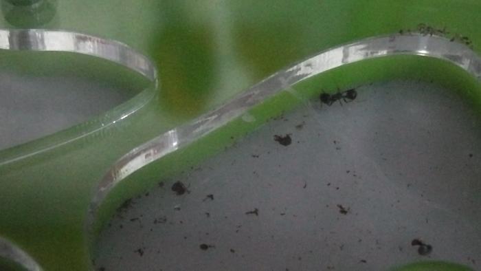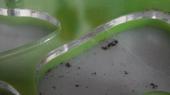 Все дергающиеся муравьи ушли в отдельный отсек формикария, их уже пять и двое полумертвых, ослабленных (из 15-ти), они крутятся, сворачиваются клубком, иногда начинают усиленно бегать, потом сворачиваются и снова падают, пара-трое здоровых находятся рядом с ними, трогают их усиками, иногда меняются. Один раз пришла матка, потрогала и вернулась обратно к расплоду. Переживаю за всю колонию, что это может быть, клещ? Хотя под лупой не нашёл клещей. Остальные вроде пока здоровы - "Разделывают" мак (Ничем больше не кормлю, может недостаток витаминов?), вылизывают расплод (Может остальные не будут умирать, дергаться?). У вас есть предположения на этот счет?