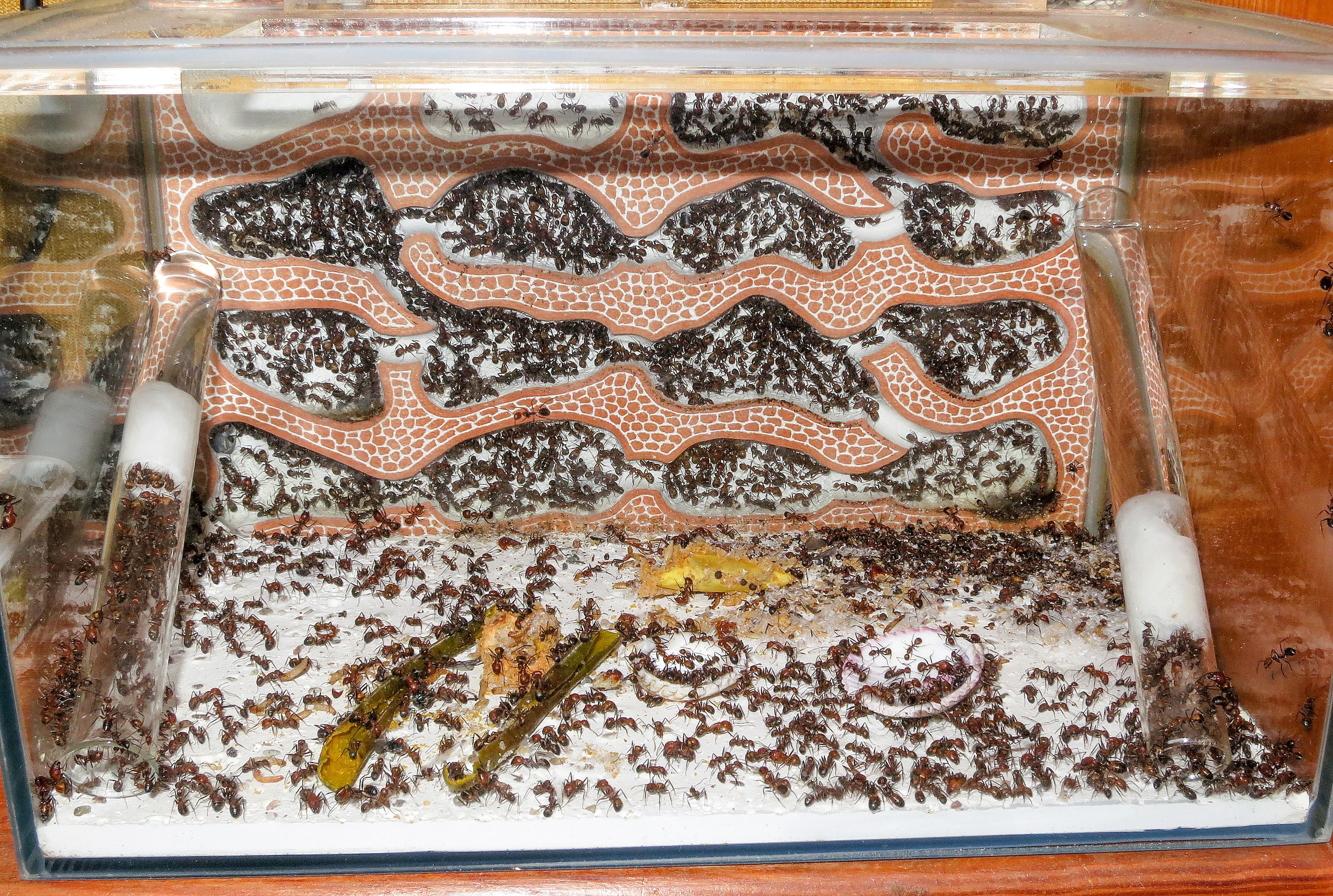 Под свободно лежащими на акриловом полу камешками всегда будет скапливаться мусор. Тут либо всё убрать, либо залить арену гипсом и поверх незастывшего "инкрустировать" камешки. И обязательно продумать место для мусорки. За всех муравьев не поручусь, но живущие у меня нигеры, фуски, вагусы, фараонисы и феидоли при создании подходящих условий чистоплотны и складывают мусор исключительно в "специально отведенных для этого местах".