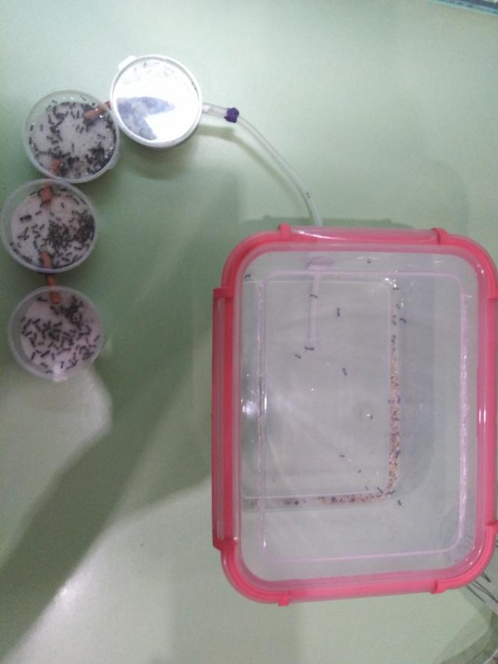 Жнецам в Кристалле не очень понравилось, да и место для новых муравьиных семей, которые наверняка появятся в скором времени, будет нужно. Поэтому я переселил их в такую конструкцию. Эстетики она не сильно удовлетворяет, в отличии от компактности и удобства для муравьёв.По мимо стандартных влажных камер, там есть одна мокрая для удобства размачивания семян.