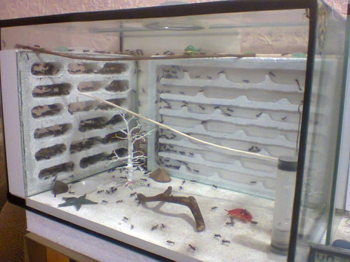 "Продаются Африканские муравьи гиганты Компонотус Феллах вместе с формикарием. Колонии в ноябре 2018 года был 1 год. В колонии матка и 500-600 муравьев. Есть уже много солдат.Размер матки 2 см. рабочие от 10 до 14 мм . солдаты от 14 до 22 мм. Есть крупные больше от матки.Сам формикарий сделан в 35 л аквариуме с двумя итонговыми плитами с камерами. пол в формикарии гипсовый - он хорошо держит влагу.Муравьи в содержании несложные. Кормить сахарным сиропом. насекомыми и фруктами. К влаге безразличны так как обитают в песчаных пустынях. Матка завезена в том году с Израиля. Размер формикария длина - 45 см. высота - 26 см. ширина - 25 см. Толщина стекла 4 мм. Пересылаю в другие города. автобус. ЖД вокзал или как вам удобно. Цена 4.100 грв. за все вместе. Также даю пинцет. пипетку. две пробирки .антипобег. белковый корм"