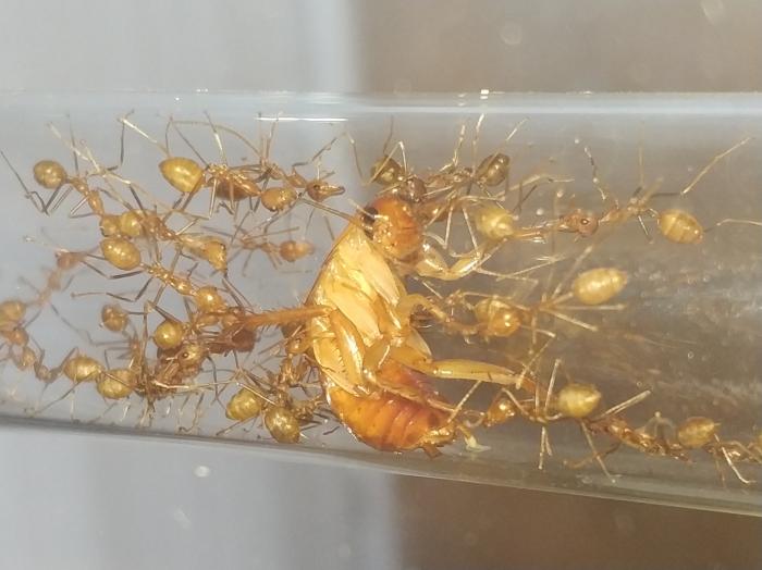 Внезапно скушали всех тараканов и я дал на пробу части мадагаскарца.