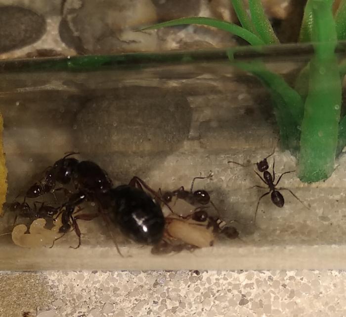 В этом дневнике буду выкладывать фото и записывать наблюдения за развитием стартующей колонии ларгов. Исходный состав стартовой колонии: самка и 7 рабочих, около десятка яиц.