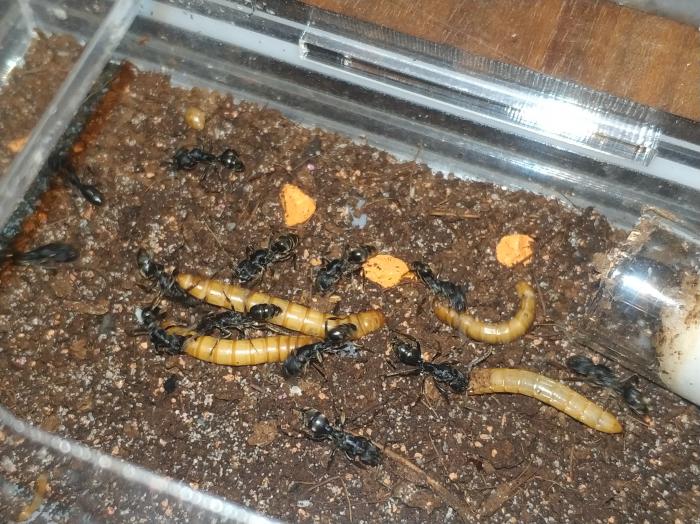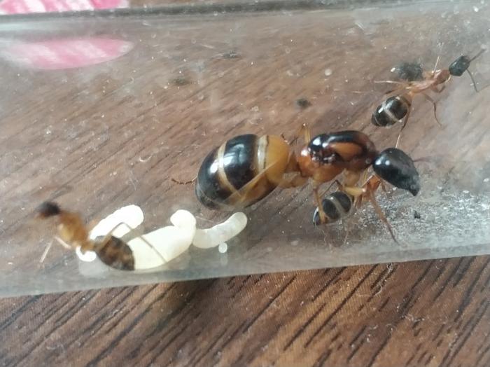 Так же приехала Myrmecia nigrocincta. Уже появились крупные личинки, скоро появятся первые коконы .