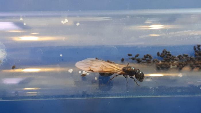 В ноябре месяце 2018го случайно поймал матку вроде бы мессор стуктора ,в пробирку её с водой ватой и кусочком ореха и подальше в шкаф .Хоть и медленно но дело пошло ,сейчас около 50 наверно мурашей ,очень много расплоду .Как стало 10-12 мурашей переселил в акриловый формикарий с алиекспреса ( в дальнейшем сделаю что то побольше из гипса ,наброски уже есть) кормлю кормом для канареек ,воду и сироп не давал вообще ,спец подогрева нет ,температура комнатная ,зимой в среднем 19-22 ,был период когда поднялась температура где то на 24-25 градусов на недельку ,вот тогда они похоже и оживились и появилось много яиц .Паралельно в прошлом месяце (март 2019 ) поймал еще двух самочек и отложил опять же в пробирки и подальше .Недавно смотрел -в обоих пробирках много яиц и одна самочка так и осталась крылатой .Буду писать о новостях и скидывать сюда фотки всех трёх семей.Одна семья дома ,две на работе (правда фотограф из меня никакой ..думаю со временем научусь ).