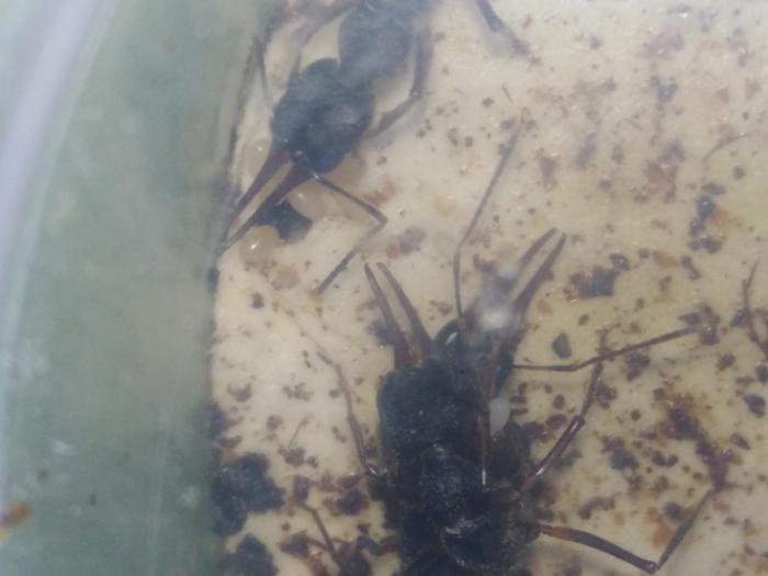 Сегодня опять застал венаторов за кладкой яиц. И кстати, оказалось, что яйца откладывает особь среднего размера. Второй раз замечаю именно её.