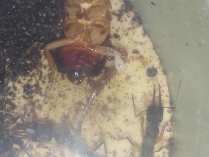 Прошло время, я заимел тараканов, натренировался на никах, жнецах и местных видах. И вот настал момент. К поставщику они доехали плохо и мне было отправлено несколько семей. Сегодня пришла посылка с этими красавицами. По приезде я ссадил их, а они приняли друг друга, как родные. Из 10 доехало 7, что я считаю неплохим результатом при условии того, что они ехали неделю. В качестве компенсации они получили туркмена, которого им удалось убить с первого раза.
