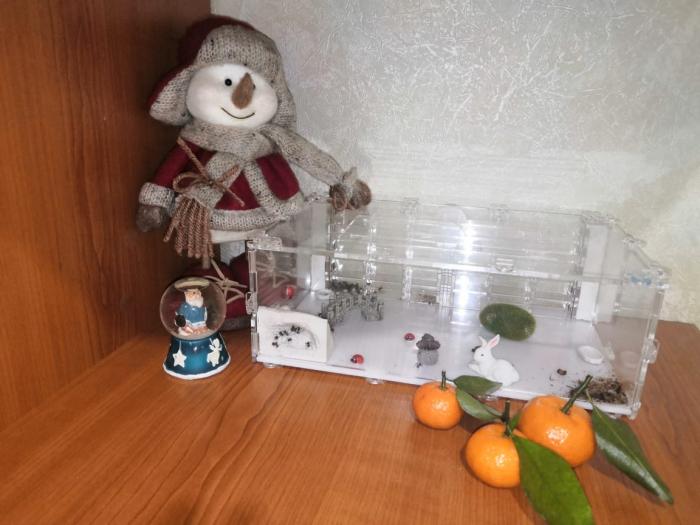Мирмикарии переехали в новый, более удобный для них и более привычный для меня формикарий. Самое интересное заключается в том, что они начали растить личинок гигантов в составе 40 особей. Вот теперь думаю, будут это очень крупные рабочие или крылатые, о которых говорил Михаил?)