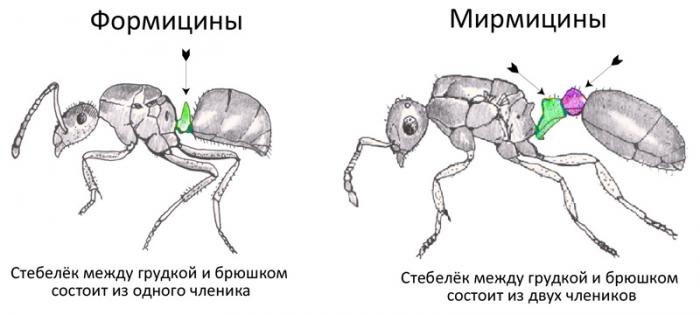 Отличия есть в строении муравьев и практически все мирмицины имеют жало, лишь у немногих оно отсутствует.