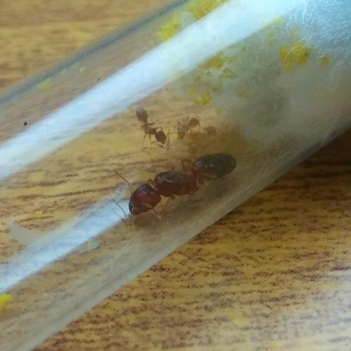 Год назад я загорелась идеей приобрести себе каких-нибудь мессоров и фейдолей, но не было возможности, а потом началась зима. В очередной раз просматривая форум, наткнулась на блог о паллидулах, которые стали моей главной целью. Идеальное сочетание— сильно выраженный полиморфизм, как мессоры, питаются семенами, маленький размер(скучаю по фараончикам). Чуть больше месяца назад я стала обладателем трёх стартовых колоний, но, к сожалению, через две недели скончалась одна из маток. Остальные чувствую себя прекрасно, откладывают много яиц и получают много еды от рабочих. Ещё одним огромный плюсом вида считаю их отношения к пище, съедают всё подчистую, оставляют только крошки. В будущем планирую заселить в акриловый формикарий, который выйграла у AntPlanet. Для таких малышек не буду рисковать делать вручную, да и времени у студента нет)