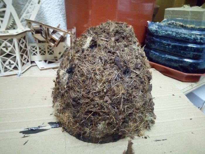 Очень похоже на муравейник каких-нибудь Лазиусов, где-нибудь на лугу, под прошлогодней травой. А если покрыть форм слоем мелких сосновых веточек и сосновой же хвои - было бы похоже на муравейник Формика. Не скрою - тоже вынашиваю идею о стилизации формикария под настоящий муравейник, но пока руки так и не дошли до этого.