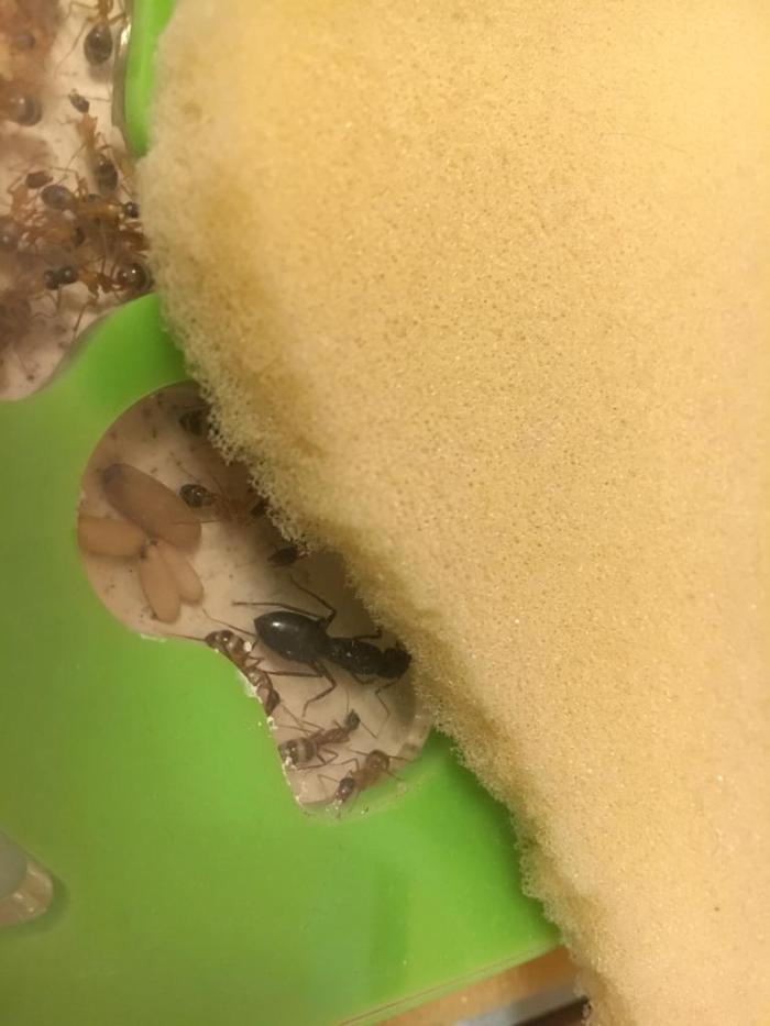 За время моего отсутсвия на сайте произошли два хороших события. Первое это вылупился солдат, а второе, я наконец-то увидел первых малюсиньких личинусов. Фото будут вечером.