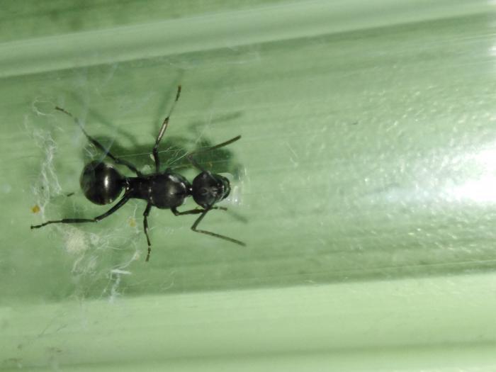 Пока я был в отъезде на свет появился первый рабочий Camponotus cf. auriventris. Он немного крупнее ников и имеет красивый серебристый окрас.