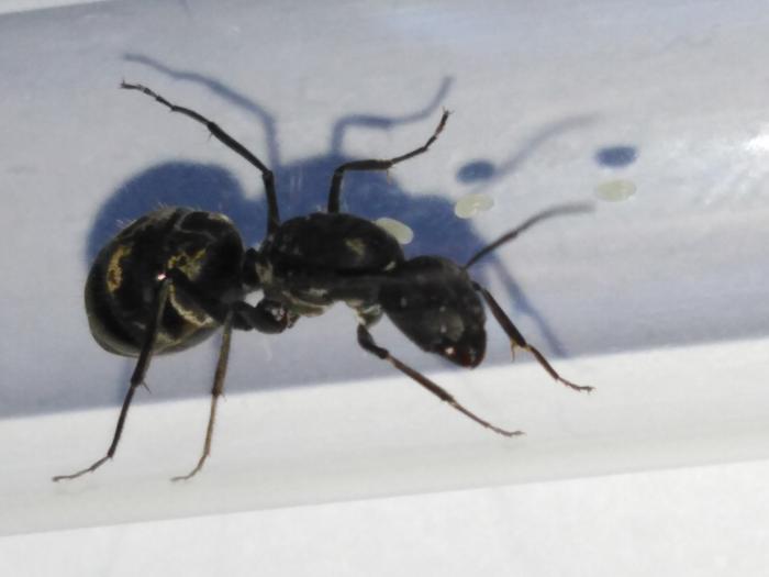 А у самки, как оказалось, Iridomyrmex anceps внезапно появился пакетик маленьких яиц. А вдруг...