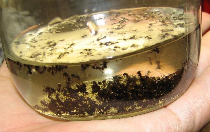 Теперь муравьев можно было кучами сгребать с полки и скидывать в банку, где они какое-то время барахтались на поверхности воды, а затем тонули.