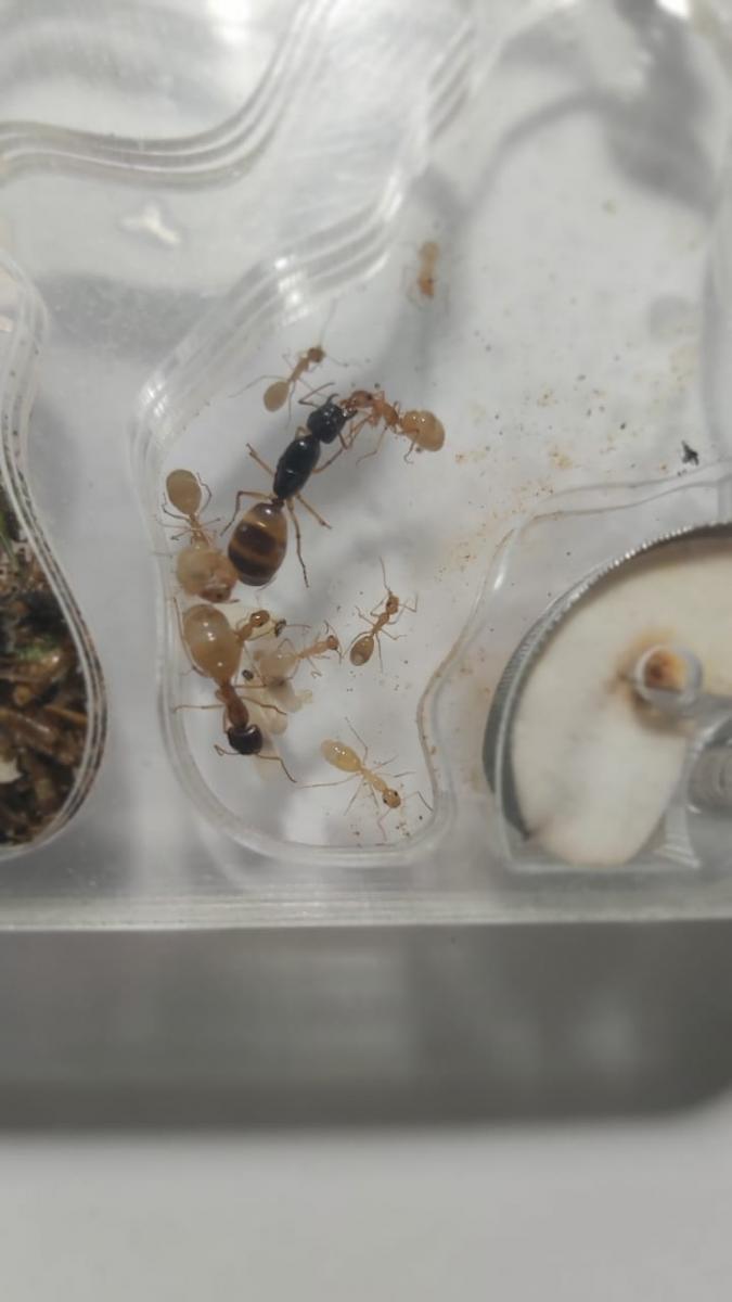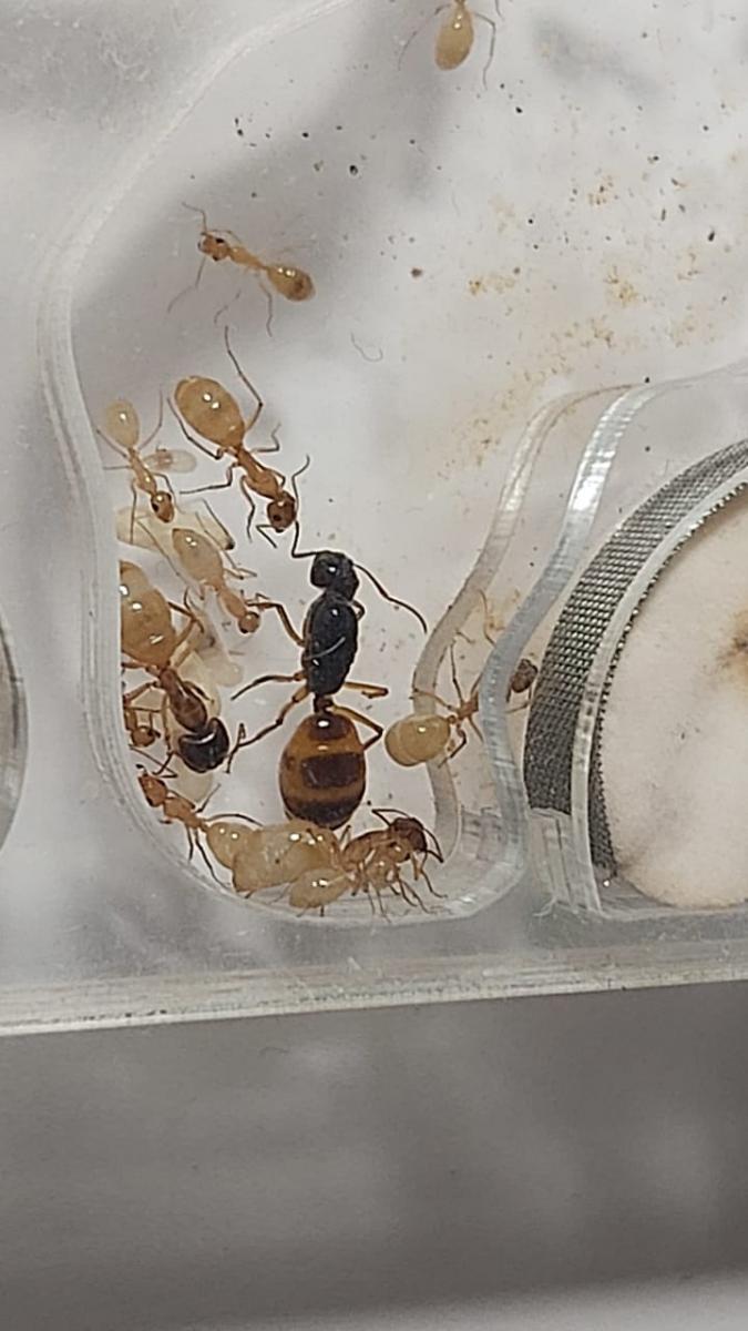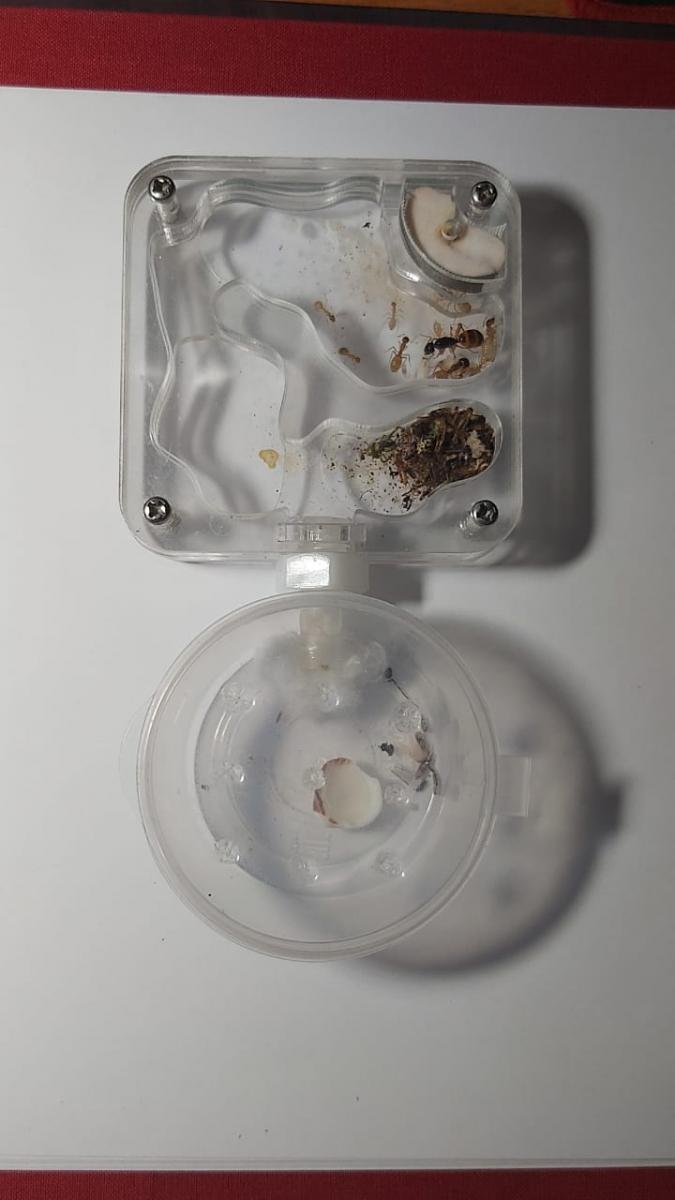 Всем привет решил написать блог про наш местный вид любимый многими Camponotus turcestanus. Данный вид я приобрел у одного знакомого в количестве матки и 5 рабочих. Дорастив их до 10 рабочих пробирка в которой я их держал треснула и пришлось в спешке их переселять. Из свободных был только старый инкубатор Ларгисепсов так что выбирать не приходилось. Так как колония была заселена рано то муравьи стали использовать одну часть инкубатора под мусорку. На данный момент в колонии насчитываются 11 рабочих, 1 полусолдат, 1 полноценный солдат и матка.