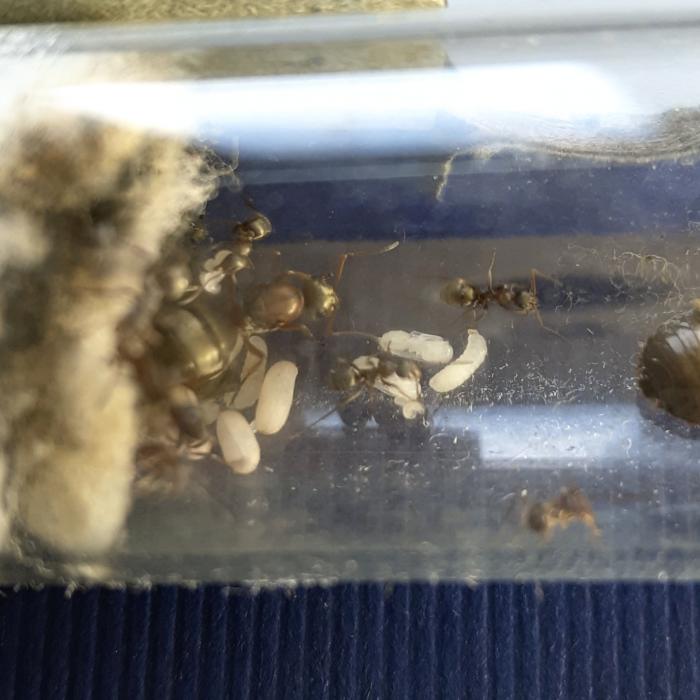 К сожалению, попытка поднять поликтену "отводками", которые, казалось бы, максимально жизнеспособны, успехов не принесла. Причины этого не очень понятны, но в одном замечательном фильме Аттенборо упоминал, что у каких-то высших формик лёт организован весьма специфически - все молодые матки федерации год за годом летают в одно место на лёт, откуда разлетаются вокруг и восполняют потребность федерации в молодых матках.