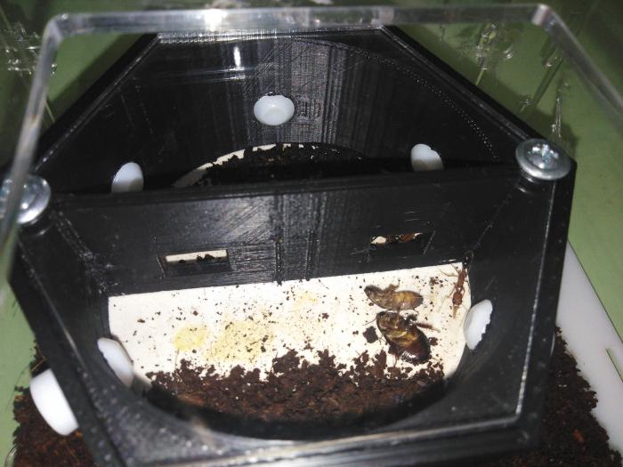 Муравьи с личинками съедают по тараканчику в день. Ну как съедают - хорошо, если хотя бы третью часть выгрызли, остальное выкидывают. Как только выкинули нужно дать нового таракана, можно раньше. Главное требование, чтобы таракан был маленьким и мягким. Это могут быть мелкие Шелфорделы, подростки Паратемноптериксы, взрослые Параплекты... Сейчас муравьи берут и придавленных тараканов тоже.