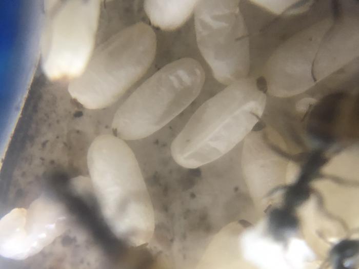 И так, муравьи быстро заняли свободное пространство. Также в Москве потеплело и уже можно найти перезимовавших гусениц, сороконожек и жучков, которых я скармливаю. Но яиц так и нет. Пожалуйста, напишите, из-за это может быть!