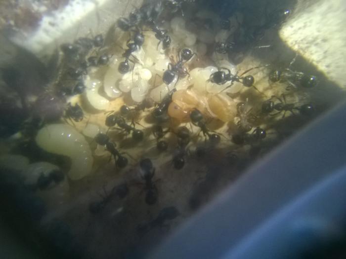 Словом, вдруг эта недоколония стала самой интересной для меня, даже уборку им сделаю пораньше, а то ошметки старой матки еще должны быть где-то там))) Посмотрим, что будет. Когда самцы и прочее, хватит ли жизни рабочим, чтобы помочь с первым поколением, если оно будет...и тд. Буду рад рекомендациям :)