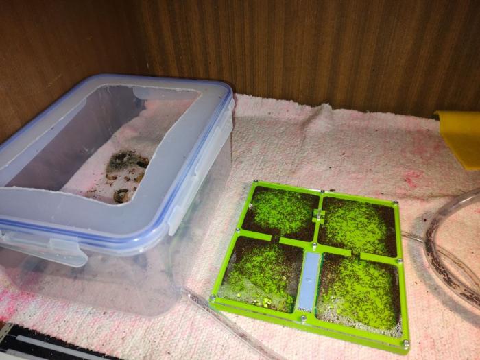 и снова очередное переселение. Из старых модулей они выросли, и методом проб и ошибок я сделал этот модуль на 3д принтере. Переселения прошло +- нормально, часть переехала из-за света, часть я перетрусил, но в целом получилось неплохо. Там места побольше, + модуль достаточно легкий, поєтому даже много модулей можна ставить друг на друга и не будет проблемы их поднять.