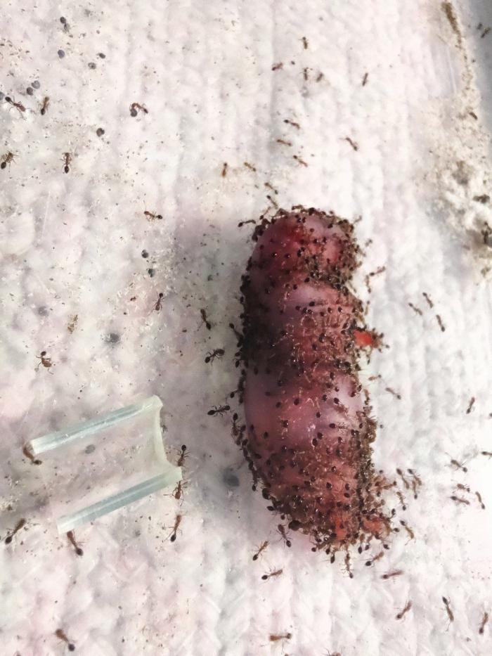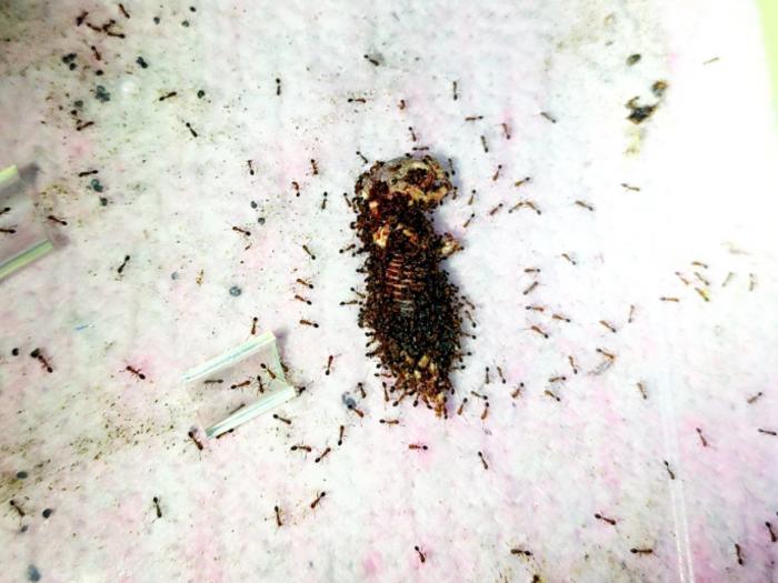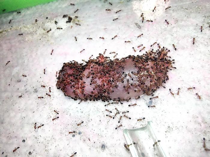 Вот это звери. С некоторыми муравьями возишься, чего бы им такого подать из белка, чтобы наконец поели, а тут прямо цех по переработке ЛЮБОГО белка.