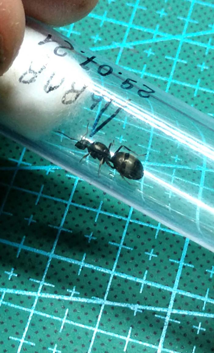 Коллеги помогите определить красавицу. Поймана 29.07.21, место - не доезжая 30-40- км до Львова (Украина) со стороны Польши. Двигается быстрыми рывками. Сразу появились яйца, в результате было всего 2 кокона. Вышли два муравья. Дальше не знаю, не уследил. Но видимо были (погрызены) убиты. Пробовал "намочить" нигера и подсадить, практически моментально погиб смертью храбрых. Брюшко сверху полосатое, чёрные и как бы серебряные полосы. Чёрные полосы блестят, спинка матовая. В принципе всё тело чёрное. Длина тела 13-14 мм. Мак не берёт, личинку знахаря, дрозофилу и сироп - берёт. Атакует подвернув брюшко под себя. Похоже на Serviformica но какая или я ошибаюсь? Хотелось бы прочитать мысли бывалых. Заранее благодарю!