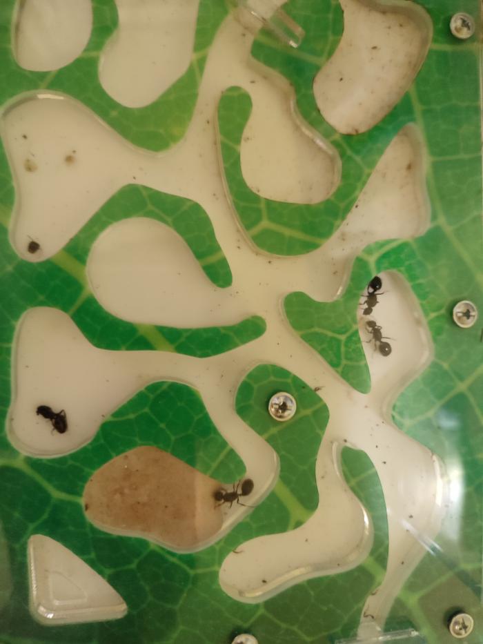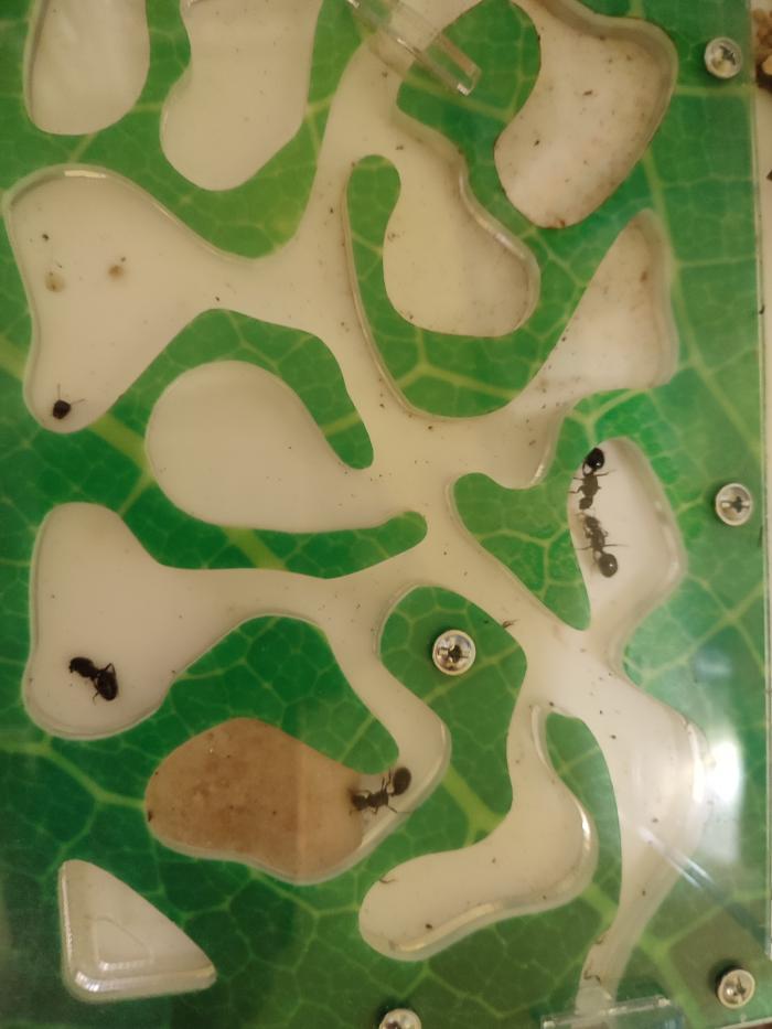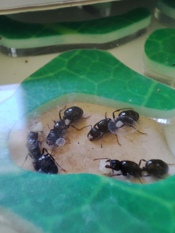 Сегодня при просмотре формикария было обнаружено что одну из маток разорвали на части голова была отдельно, две лапы были в камере с едой, как и часть тела, при внимательном осмотре было обнаружено что это была та матка которая предпочитала держатся обособлено от остальных. Убита она была не позже пяти до этого поста так как во время снимков голова еще подавала признаки жизни шевелением жвал и усиков. Снимки были сделаны 15.05.2022 в 1:35:36. Остальные матки несмотря на случившуюся бойню не пострадали, судя по всему убийство было скооперированным. Хотя во время осмотра они выглядели немного стрессироваными, они продолжили заниматься уходом за расплодом и сортировкой новоприбывшего белка.