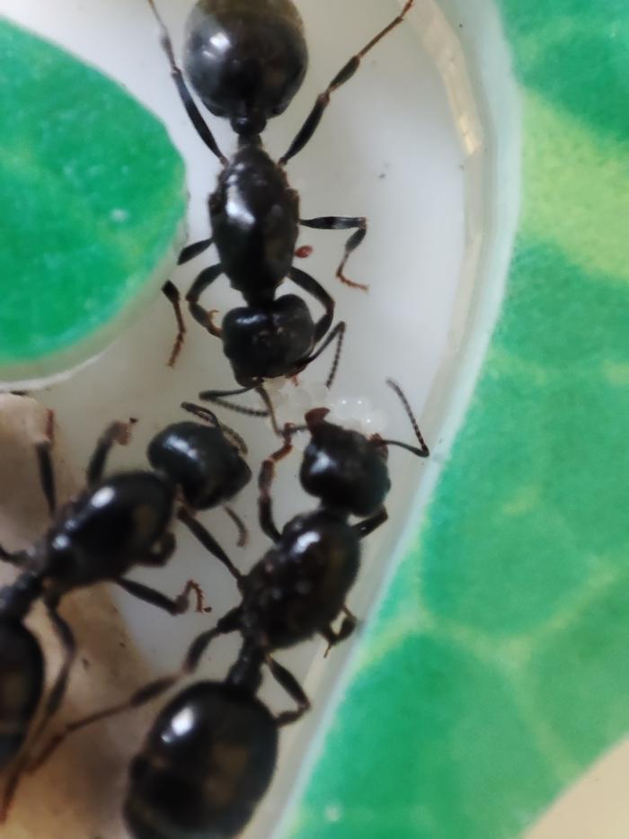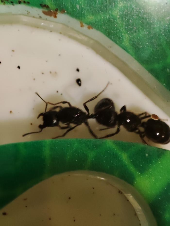 Я заметил что одна из маток схватив другую матку чуть повыше брюшка начала утаскивать ее из яслей, вторая матка не проявляла практически никакого сопротивления кроме как недовольства данным способом утаскивания. Спустя 3 минуты 32 секунды дотащив ее до края формикария она загнула ее брюшко и предприняла попытку убрать странный выступ с него, спустя 14 секунд она бросила это дело и обе матки расползлись в разные части формикария. Потом я сделал фотосессию матки с выступом. Может ли кто подсказать что за выступ у данной матки находится на брюшке. Из за однородности цвета его видно только с определенного ракурса. Фото прилагаются.