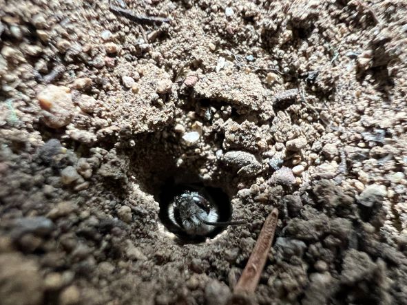 По прогнозу был дождь, вот мне и показалось, что это они таким образом собираются пережить его, но на следующий день после дождя ситуация не сильно изменилась, несмотря на то что маток стало значительно меньше. Далее можно было ещё видеть отдельных вялых особей на стенах, но потом и они сгинули. Другим повезло больше: они нашли свой газон, а может и целый пустырь со всякими сорняками, и вырыли уютненькую норку.