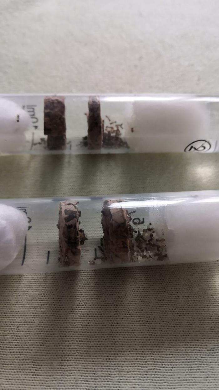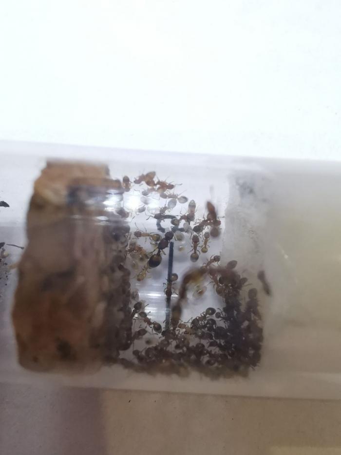 Пока мои формики считают клубнику врагом, а у фугасов тяга к приключениям и побегам, мои маленькие муравьи temnothorax unifasciatus живут в коктейльной трубочке, которая лежит в пробирке.