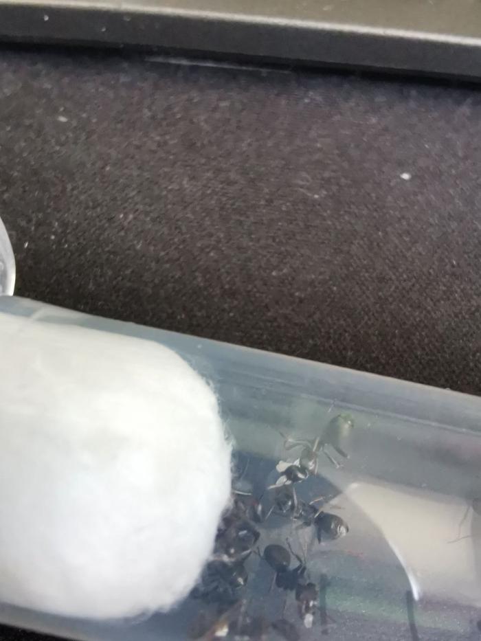 Сегодня свершилось чудо! У сангвиний вывелся первый рабочий! Прилагаю фото. Герой данного поста находится в нижней части пробирки)
