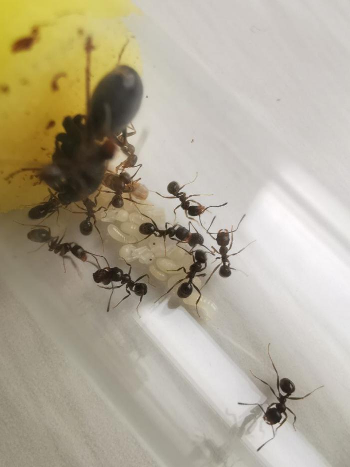 Мароканусов уже под 40! Так же у них появилась личинка первого солдата. Интересно, будет ли у него красный торакс или нет.