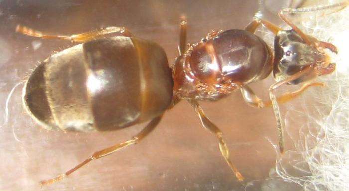 Вот спасибо HR-ant! Я привез из Туапсе точно таких же. Вечером их много на свет летело! Лазиусов очень много было. Я взял трёх без крыльев. Я тоже думаю, что это Lasius brunneus. Видел их рабочих. И насчет мелкого вида тоже думал, что какой-то компонотус, но не знал какой. Этих компонотусов без крыльев не видел и взял трех крылатых с самцами. Все фонари ими три дня облеплены были. Самцы погибли. Одна самка сбросила крылья. Но яйца откладывать не хочет. И сироп не пьет. Две другие сидят с крыльями. Хорошие фотографии! А у меня фотик в ремонте. Детё на камни уронил. Но теперь знаю, кто мне попался! Кто-нибудь знает особенности этого компонотуса? Может для откладывания яиц ей особые условия нужны?