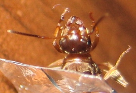 Итак, до сих пор крылья не скинула, яйца не развиваются. Принял решение умертвить матку, чтобы прекратить ее мучения. От еды она отказывалась, а на кормовых яйцах долго бы не протянула. Тут сегодня, как раз, прилипла к меду (как она умудрялась постоянно прилипать?? наверное крылья мешают). Нафоткал ее напоследок, вот фотки: