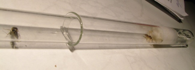 Итак, матка была успешно подсажена, причем у матки нигера как оказалось уже есть 4 новорожденных муравья. Поначалу были проявления агрессии, но все успокоилось - заведу запись в дневнике, где все подробно опишу. На данный момент ситуация такая - две пробирки соединены стык в стык. Умбратус занимает позицию на расплоде, в окружении рабочих, нигер переместилась во вторую пробирку, соблазнившись капелькой меда. Друзья, что посоветуте дальше, оставить их вдвоем или нигера отселить? Хотел принять решение утром, так как боюсь внезапного проявления агрессии, которое может привести к гибели одной из маток.