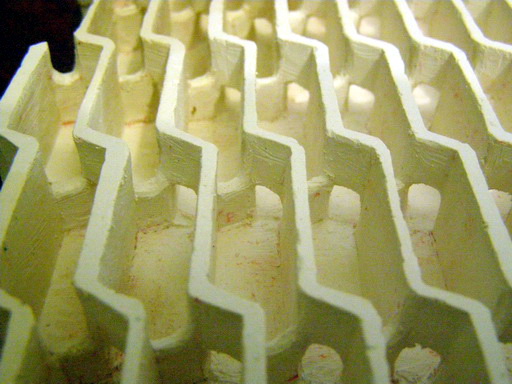 2-й вариант, мне так кажется, более перспективный. А по поводу 1-го, то и сдесь ты прав, да, это соты, но они будут образовывать камеру не деформацией формы правильного шестиугольника, а удалением общих стенок (например, 5 сот (ячеек) образуют 1 камеру) - получится продолговатая камера с волнистым дном и волнистым потолком.