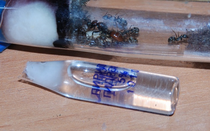 Вы правы, конструкция универсальная. Можно так оставлять колонию на достаточно продолжительные скроки. Совет: если хорошо поискать, в магазинах лабмедтехники на ряду с "обычными" пробирками продаются пробирки биаметром примерно 5-6 мм (или что-то около того). Для небольших семей они в качестве поилки хорошо подходят. Об ампулу всё же можно порезаться.