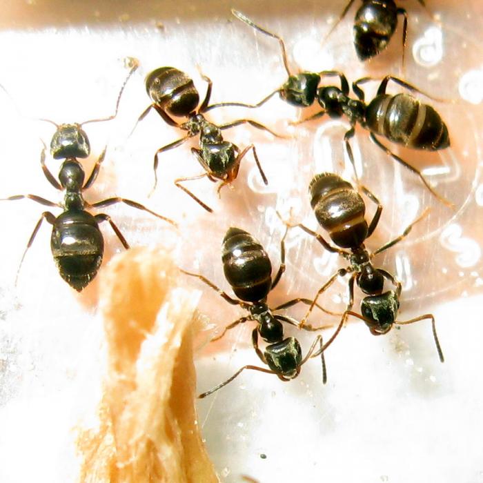 Мясо, конечно, положил туда я ) Накануне поробовал давать им это мясо но маленькие кусочки быстро высыхали и муравьи теряли к нему интерес. Поэтому оставшийся кусок, я сегодня с утра разделил на две части; одну отдал нигерам, а вторую - мирмикам.