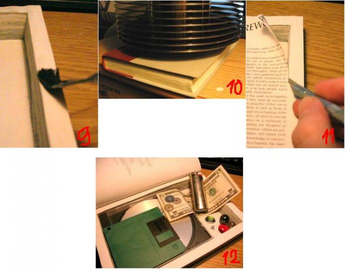 Первое что делаем, проклеиваем книгу по контору, что бы при вырезании страницы были зафиксированны.