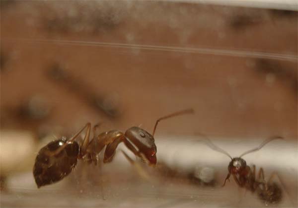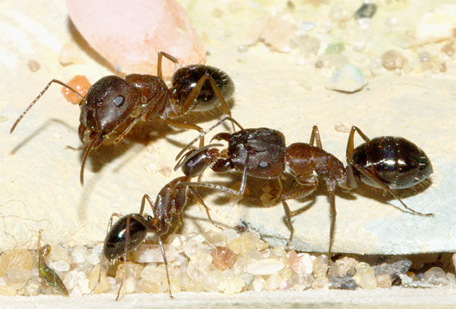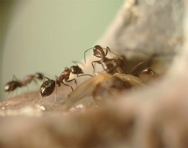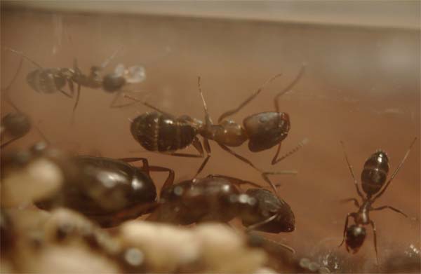 Что интересно -- с ростом численности изменилось и поведение. Сейчас на арене ходят с десяток рабочих и пара солдат. Ходят спокойно и деловито. Поднесёшь палец -- спокойно обнюхает и полезет на него исследовать. Но могут быть и реактивными. С ростом численности стало меньше паники. Появилась уверенность в себе и в своих силах. Солидность и словно -- рассудительность. Интересно наблюдать за ними.