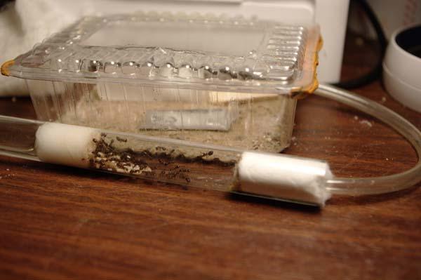 Не так давно я получил приз за лучший формикарий -- семью Camponotus punctulatus (матовый кампонотус). Самку и 11 рабочих. Рабочие размером где-то между нигерами и сервиформикой. Возможно, потом крупнее будут рождаться. Шустрые муравьишки. Только ужасные паникёры. Стоит осветить или слегка тронуть пробирку -- паника. Носятся с приплодом по всей пробирке и на арену. По уму и сообразительности, мне кажется, где-то на уровне бегунков. Явно отстают от формиков. Умнее формиков я пока муравьев не видел. Тьфу, тьфу, тьфу -- размножаются. Сейчас их около 30 штук. Готовлю для них формикарий. Вернее -- две секции в моём большом формикарии. Одна секция -- из гипса, другая -- деревянная. Посмотрим, где им понравится. Секции соединил внутренним переходом. Сейчас делаю арену. вот такие дела. А теперь -- фотографии. А то -- не интересно.