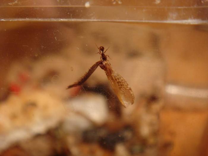 Один раз на руку сел смешной маленький крылатый муравей 5-6 мм. С полосатым брюшком, поймать не смог :) я думал это тетра :)
