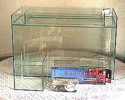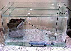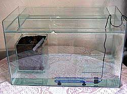 По краю аквариума расположен стеклянный ров шириной 10 см и глубиной 6.5 см. Ров заполняется водой или маслом. Это пресекает побеги муравьев, которые смогут подняться по стеклу наверх.