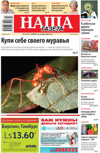 Для этого надо всего ничего — купить семью муравьев Atta cephalotes. Помочь зоопарку их приобрести может каждый даугавпилчанин, поддержав эту акцию лишь несколькими сантимами. «Мы долго выбирали кандидата для этой акции и не случайно остановились на муравьях, — рассказал «Нашей Газете» директор Михаил Пупиньш. — Дело в том, что эти удивительные насекомые очень похожи на человека. Они работают всю жизнь, не отдыхают, они — «люди» семейные, все связаны между собой родственными узами, заботятся о своих детках (кормят их, купают, переносят с места на место). Главная у муравьев — женщина, королева, единственная работа которой — непрерывно рожать. Это, кстати, хороший пример для повышения демографии в стране. В день королева «производит» на белый свет от 4 до 30 детей. Неплохие темпы, правда?»…
