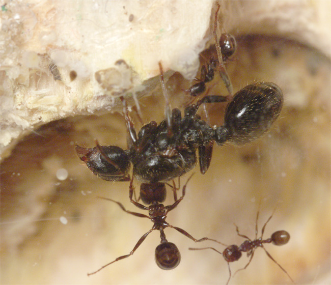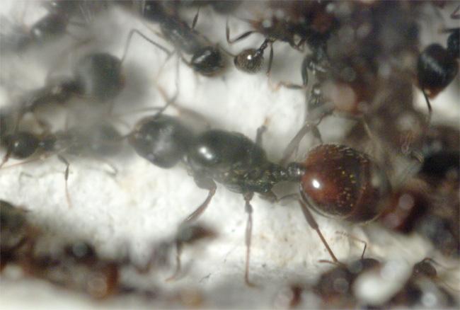 Вот смотрите сами. "Родная" самка жнецов с красноватым брюшком. Остальные -- обычные. Все они живут в одном формикарии.