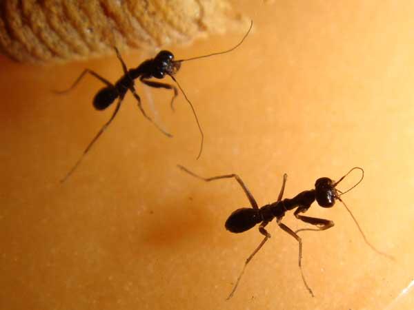 У меня сегодня вылупились из двух оотек муравьиные богомолы (Odontomantis sp.). Они, действительно, похожи на муравьев - чёрные и блестящие, в длину 5-6 мм.